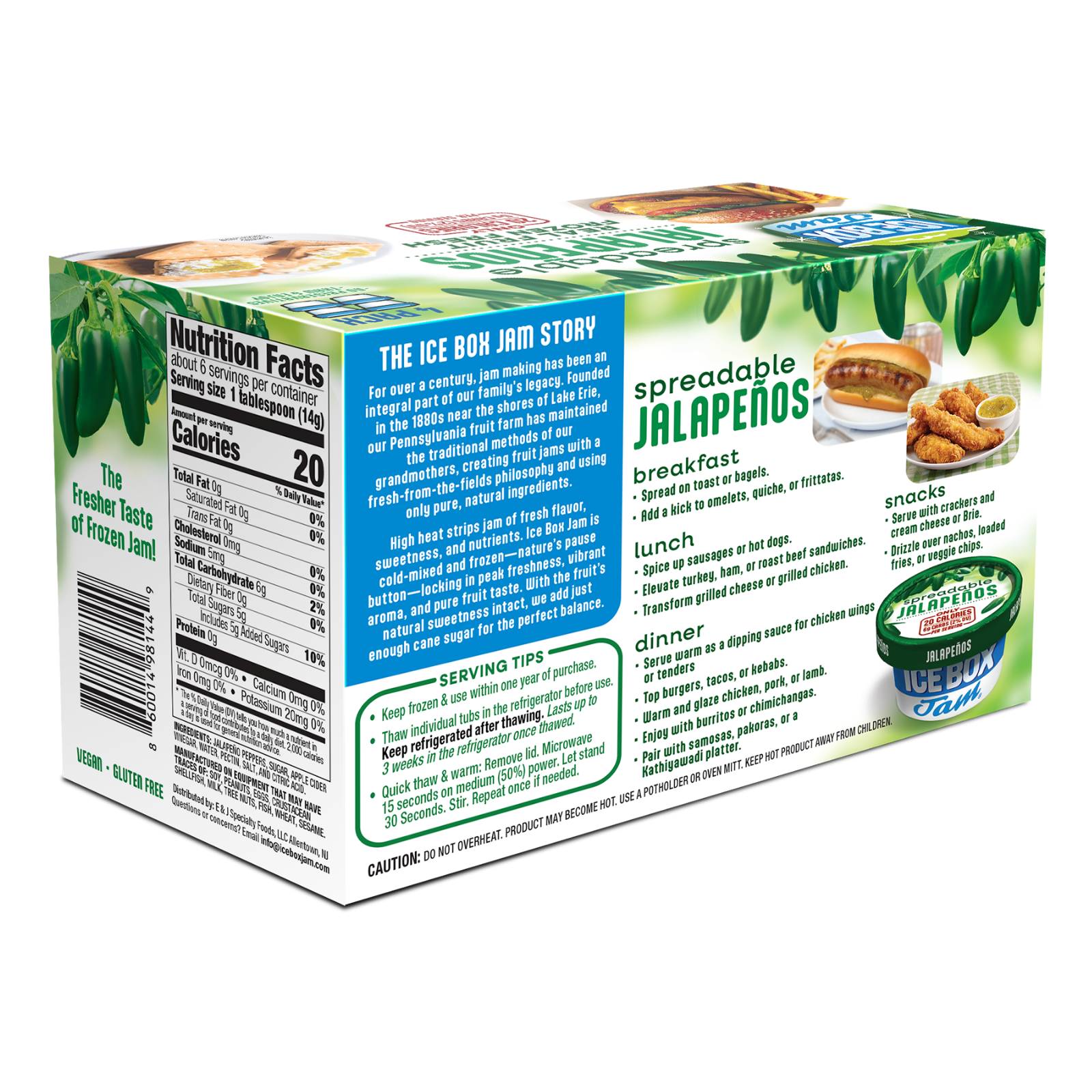 Ice Box Jam Jalapeño is a savory-leaning flavor with a subtle kick of heat and a touch of sweetness. Frozen fresh and easy to control, it thaws into a smooth texture ideal for glazing, drizzling, or spreading. Use it on burgers, steak, chicken, pork, or charcuterie boards. Whether brushed on as a glaze or served as a finishing touch, Jalapeño Ice Box Jam adds unexpected flavor with versatility built in.